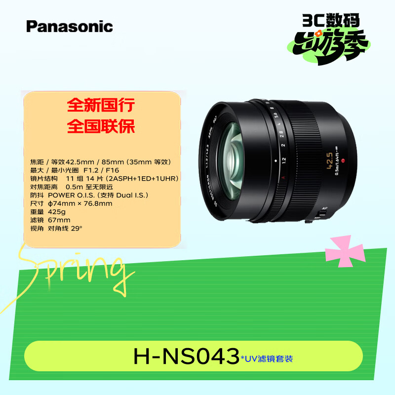 松下(Panasonic)H-NS043(UV滤镜套装) LEICA DG 中长焦镜头42.5mm/F1.2 M43卡口徕卡定焦镜头