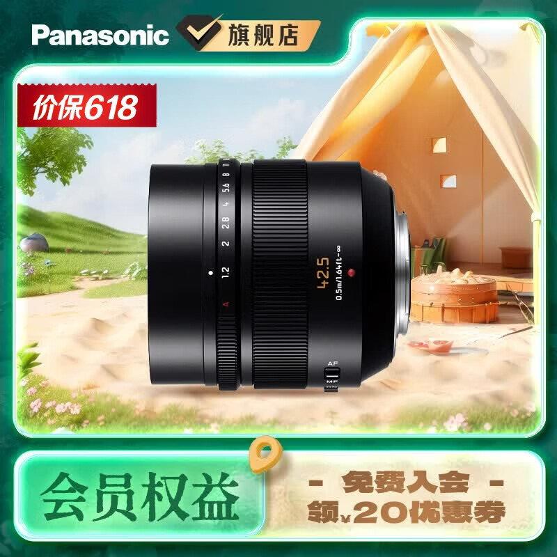 松下(Panasonic) 42.5mm F1.2微单相机 大光圈人像中远定焦镜头 M43卡口 黑色